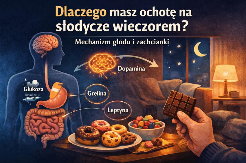 Wieczorne podjadanie i ochota na słodycze? Sprawdź mechanizm głodu, hormonów i glikemii. Wyjaśnia dietetyk z Wrocławia i Siechnic.